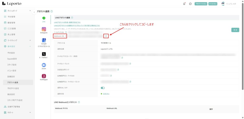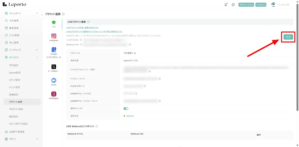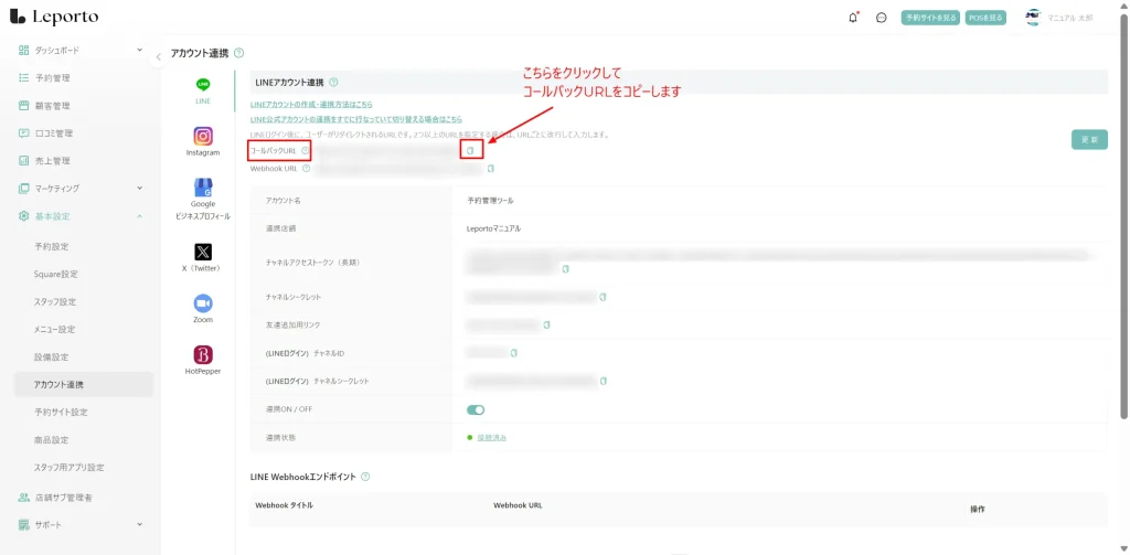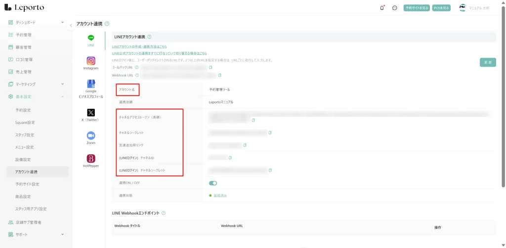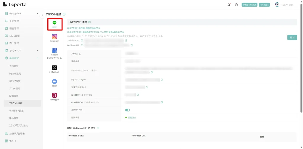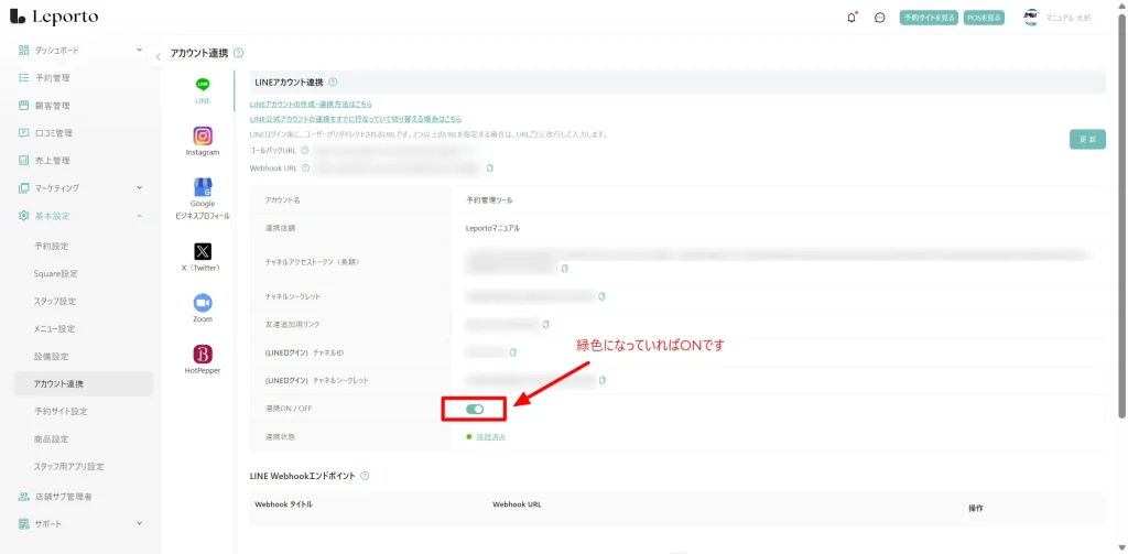 以上でLINE公式アカウントと、Leportoの連携が完了しました。