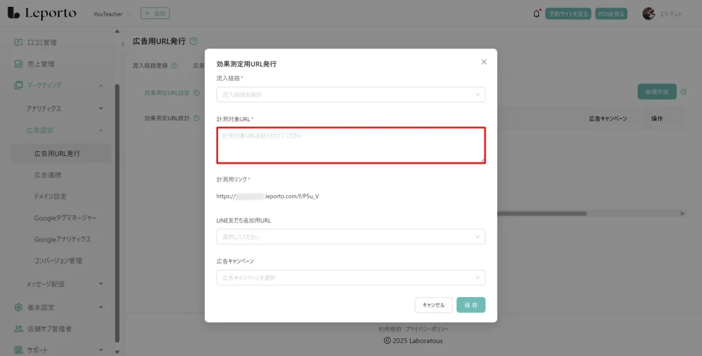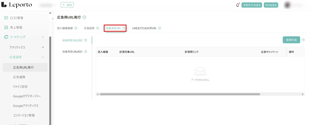 広告の効果を正しく計測するために、まず「効果測定URL設定」を行ってください。