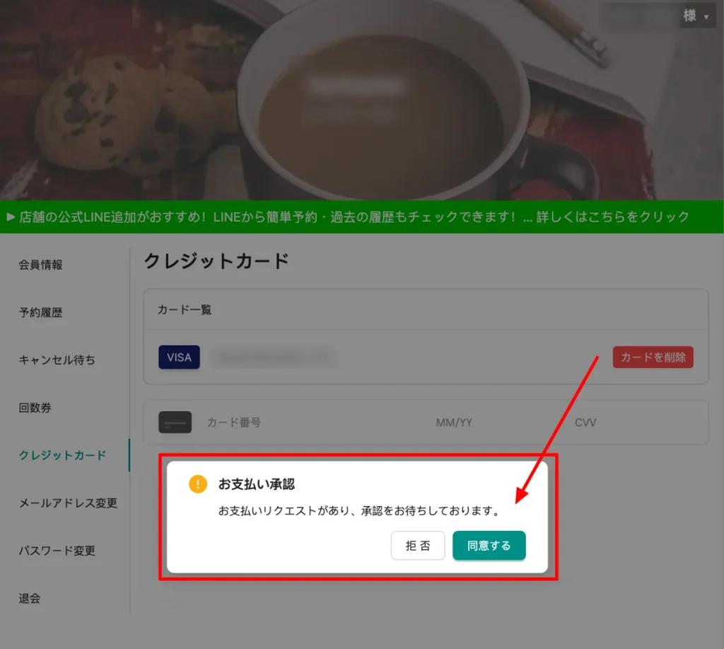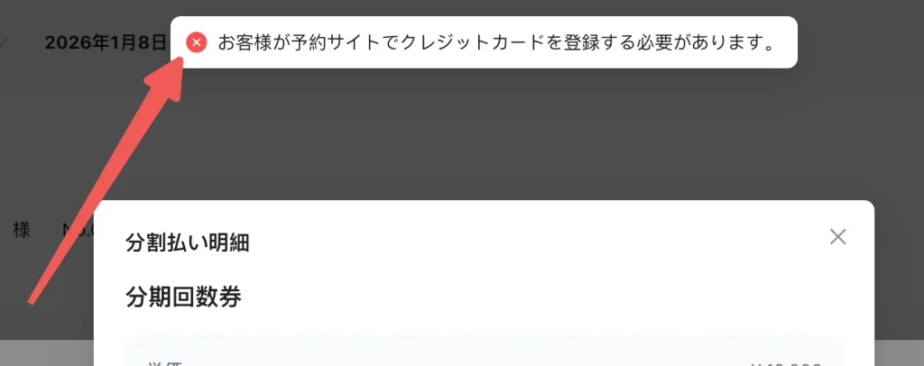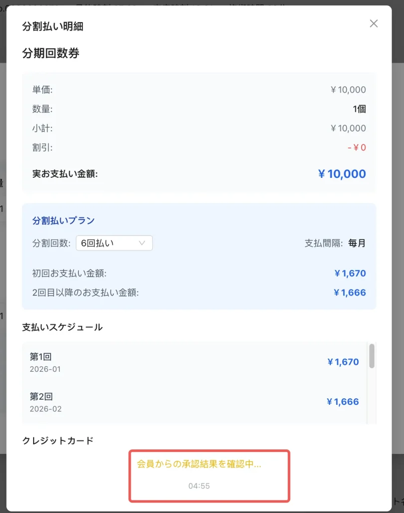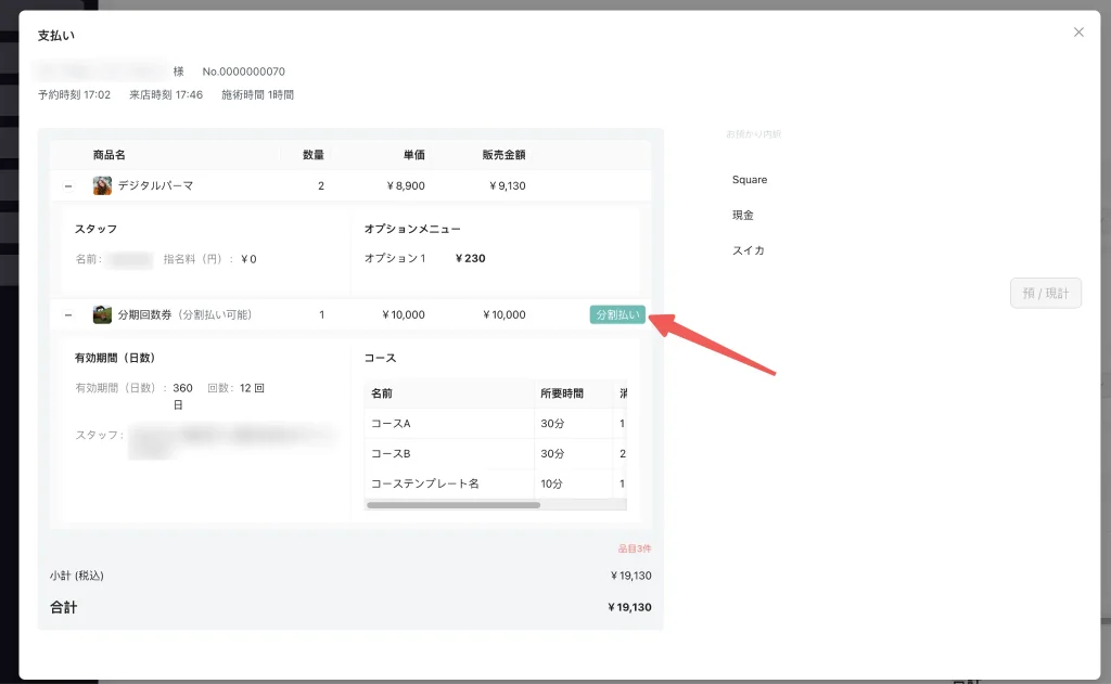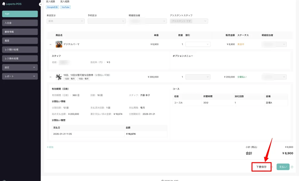 この時点で回数券の購入は完了していますが、当日の施術分(カットなど)の会計は未精算のままです