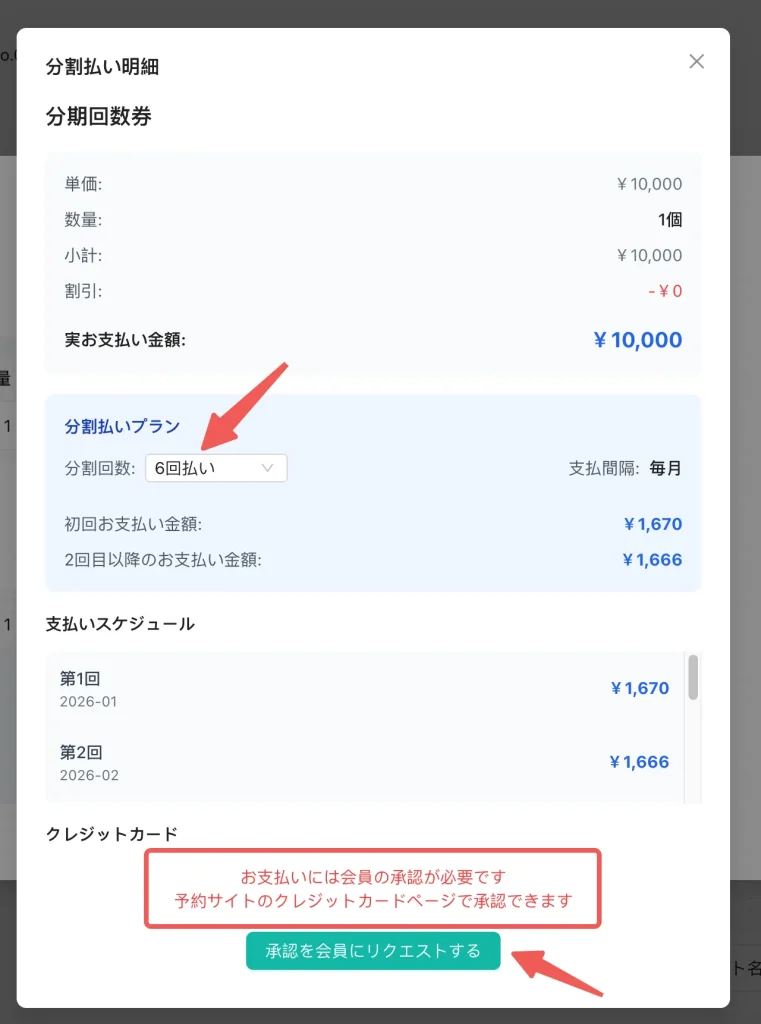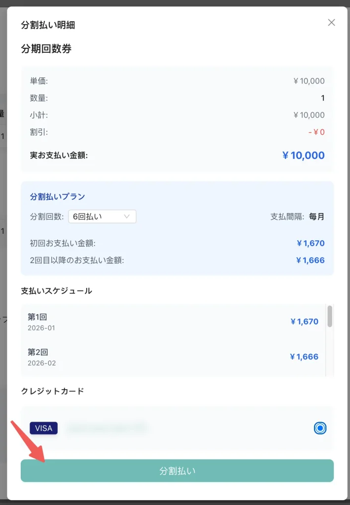 分割払いで回数券を購入した直後、同じ日の施術分の会計に、その回数券をすぐに使用できます。
