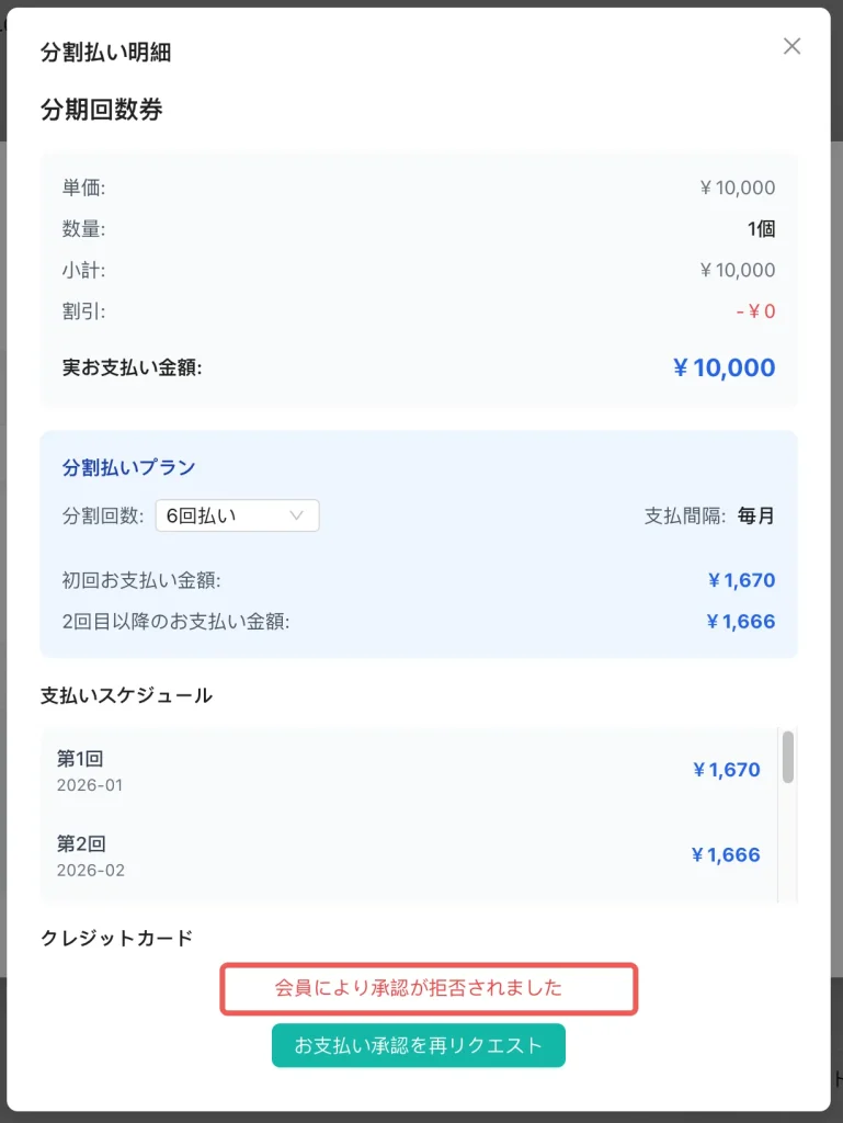 [履歴]メニューから、過去の分割払い情報を確認できます。