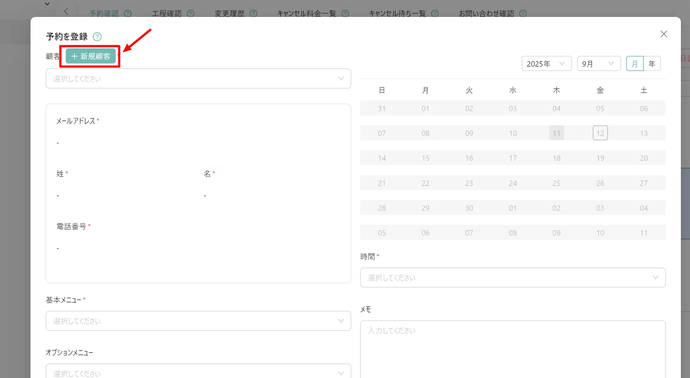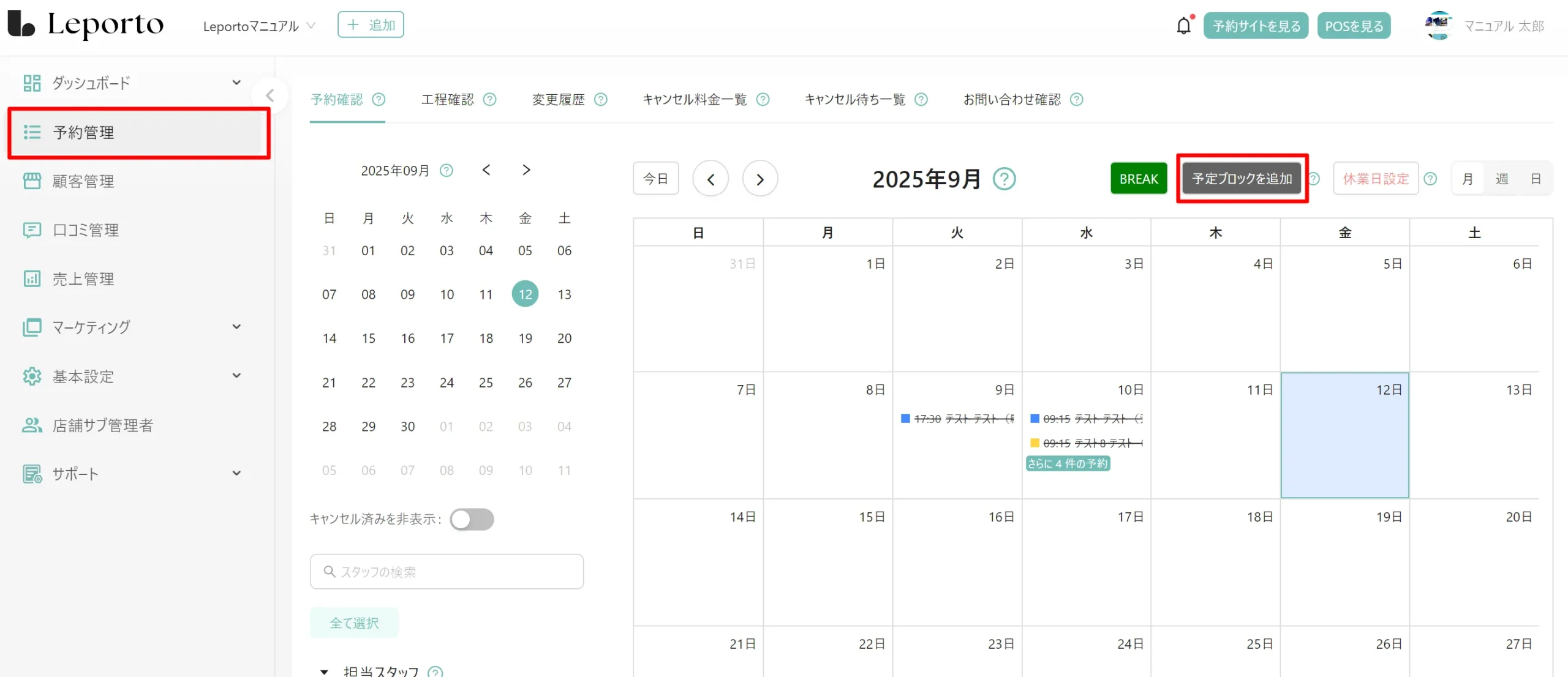 詳細な操作手順については予約の追加マニュアルをご確認ください。