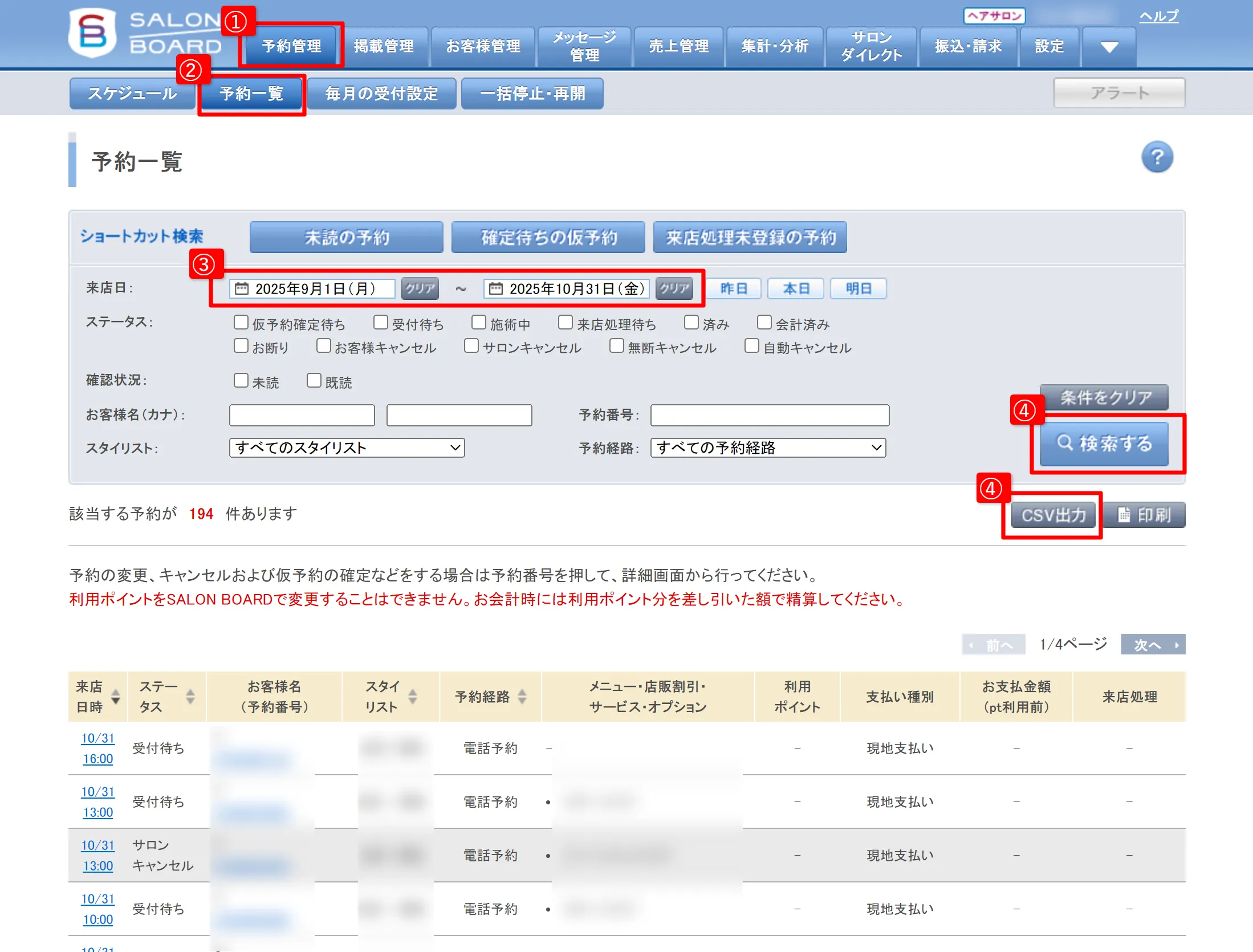 既存の顧客・予約データをシステムに移行してから、来店時にLINE予約を促します。